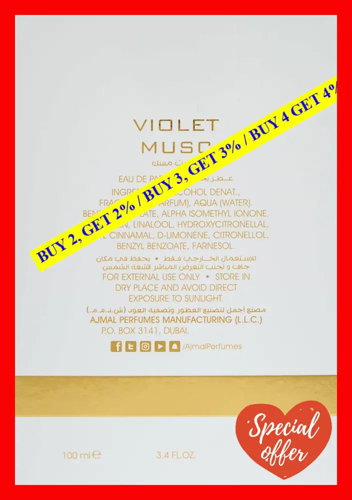 \nOverall, Violet Musc by Ajmal is a sophisticated fragrance that exudes confidence and class. Try it today and experience its magical charm for yourself.