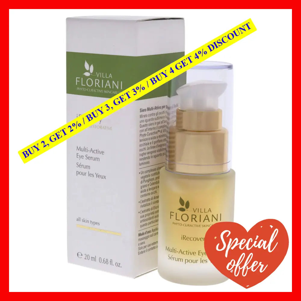 The Recovery Multi-Active Eye Serum by Villa Floriani is the perfect solution for reducing the signs of aging and stress around your eyes. With a blend of natural and organic ingredients, this serum rejuvenates the delicate skin around your eyes, leaving it moisturized, firmer and brighter. It contains potent antioxidants, anti-inflammatories and nourishing botanicals that work together to help reduce the appearance of fine lines, wrinkles, dark circles and puffiness.