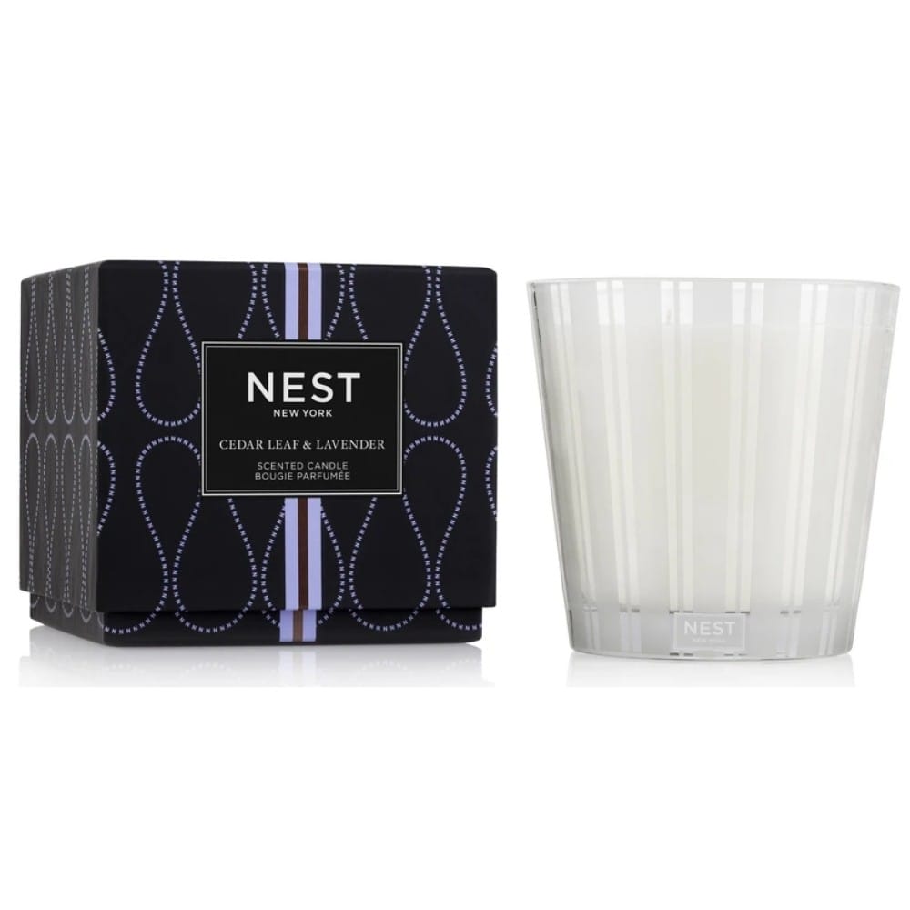 Indulge your senses and embrace the tranquility of nature with the Nest Fragrances Cedar Leaf and Lavender 3-wick Candle - a masterpiece of relaxation and peaceful ambiance that transcends age and time.