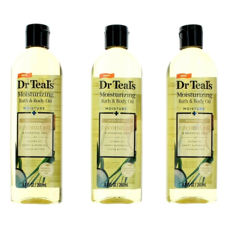 Introducing the Nourishing Coconut Oil & Essential Oils By Dr. Teal's, a sensational 3-pack of 8.8 oz Moisturizing Bath & Body Oil that will transport you to a blissful paradise. Crafted with care, this unique formula combines the natural benefits of coconut oil with the soothing essence of essential oils, creating a spa-like experience in the comfort of your own home.