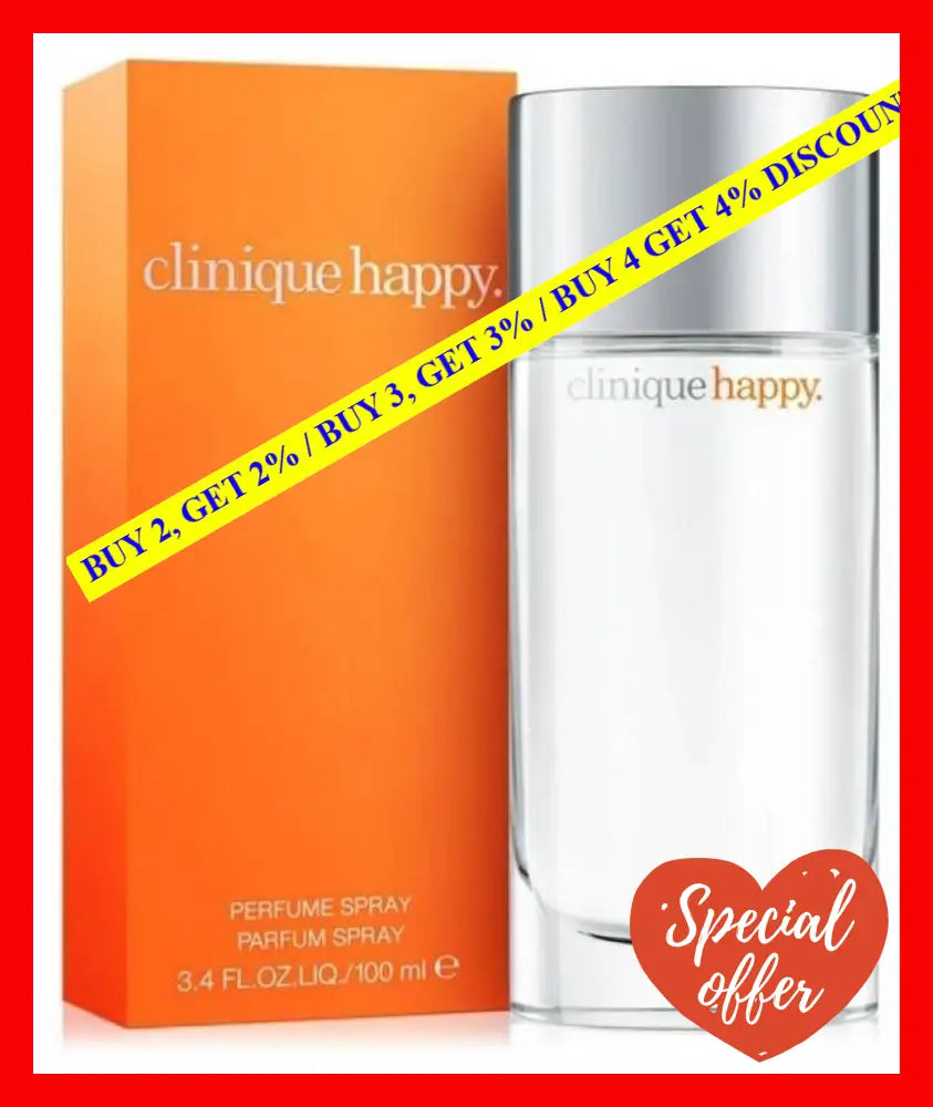 Clinique Happy Perfume Was Released In 1997 But Remains Popular To This Day. Described As "Happiness In A Bottle," The Happy Fragrance Is Light, Citrusy, And Uplifting, And It's Great For All-Day Wear.?Its Bright, Lively Scent Profile, Clinique Happy For Women Is Sure To Put You In A Sunny State Of Mind. Sparkling With Luscious Fruits Like Apple, Orange, Bergamot, Grapefruit, And Plum, Clinique Happy Perfume Spray Has An Upbeat Scent Accented By Fresh Air Accords For A Cooling Breath. Its Heart?Notes Include A Bouquet Of Freesia, Lily, Rose, And Orchid Atop A Sensual Base Of Amber And Musk. Ideal For Daytime Wear, Clinique Happy Women's Perfume Is Excellent As A Go-To Summer Fragrance. Features: Gender: Women Category: Perfume Type: Eau De Parfum Top Notes: Orange, Indian Mandarin, Plum, Blood Grapefruit, Apple, And Bergamot Heart Notes: Orchid, Freesia, Lily-Of-The-Valley And Roses Base Notes: Mimosa, Lily, Magnolia, Amber And Musk Size: 100 ML Packaged In A Beautiful Glass Bottle