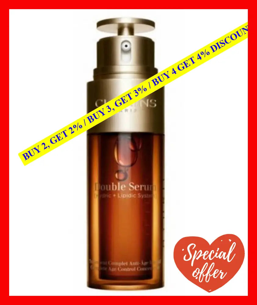 Clarins double serum is a complete age control concentrate formulated to help work on the 5 vital functions of the skin for a more youthful and radiant complexion. Now containing 21 active plant extracts including new star ingredient turmeric, distinguished for its exceptional anti-ageing properties. Double serum acts on the appearance of major signs of skin-ageing, skin is more radiant, firmer and fine lines are smoothed. The new innovative bottle delivers a made-to-measure dosage of the serum, thanks to its rotating push button. Feature: