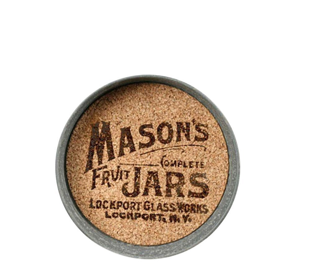 Features cork inside to absorb moisture. Features a Mason Jar Logo printed in waterproof ink. Lids will fit a wide-mouth mason jar. 3¾ diameter and 1 tall. Mason jar is not included.