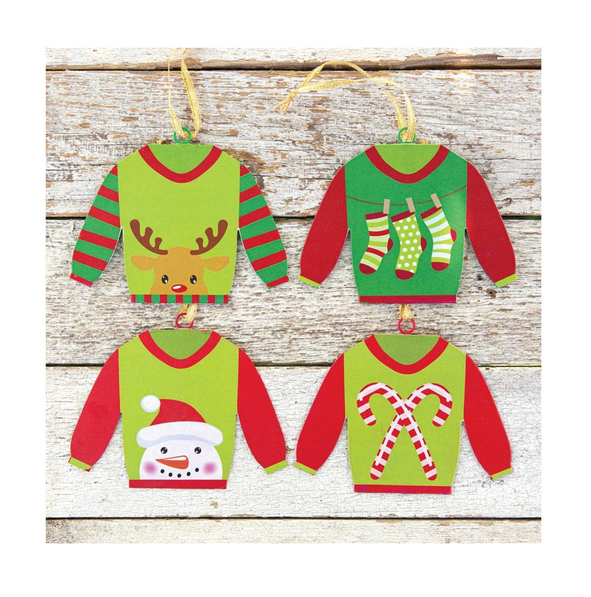 Dress up your tree this holiday season with these cute and festive holiday sweater ornaments! SKU: 370303 Measurement: 5½''W x 4½''H UPC: 801106194521