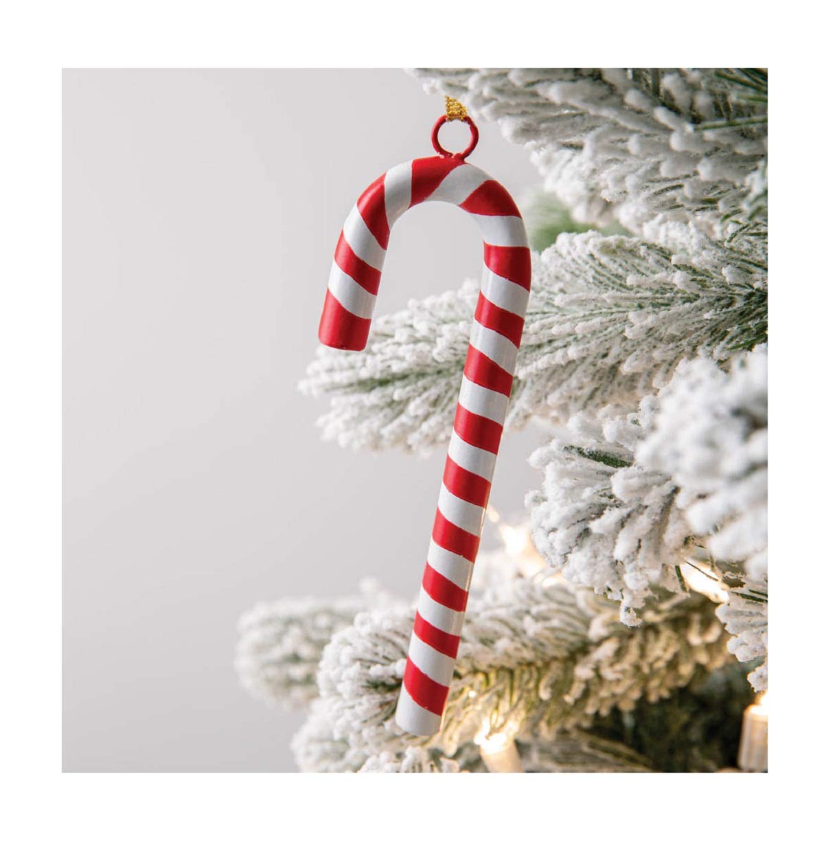 This candy cane ornament is made of metal