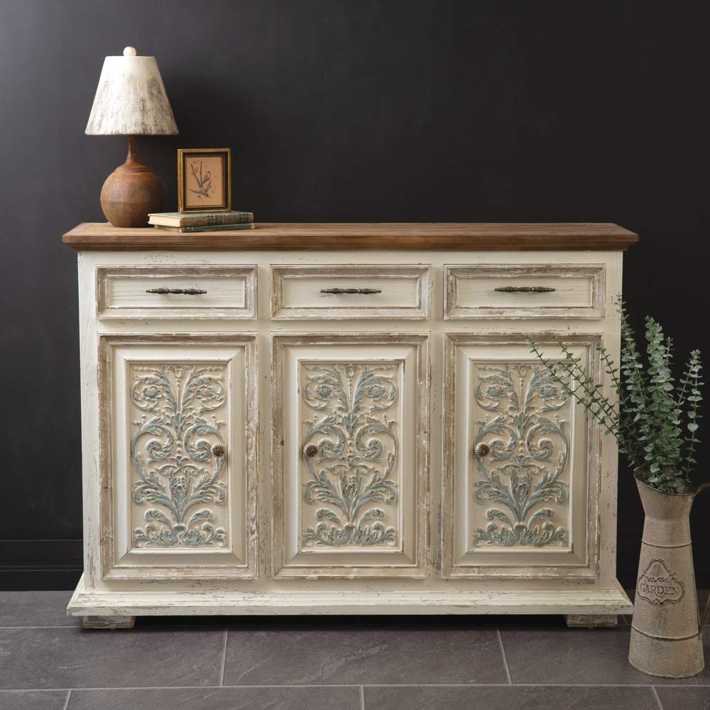 Use this console table in an entryway or as a sideboard server. There will be an added touch of the countryside into your home with its wooden finish and French filigree.