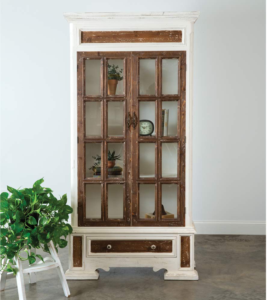 The Augustin Display Cabinet is a tall cabinet with glass panes for seeing items inside
