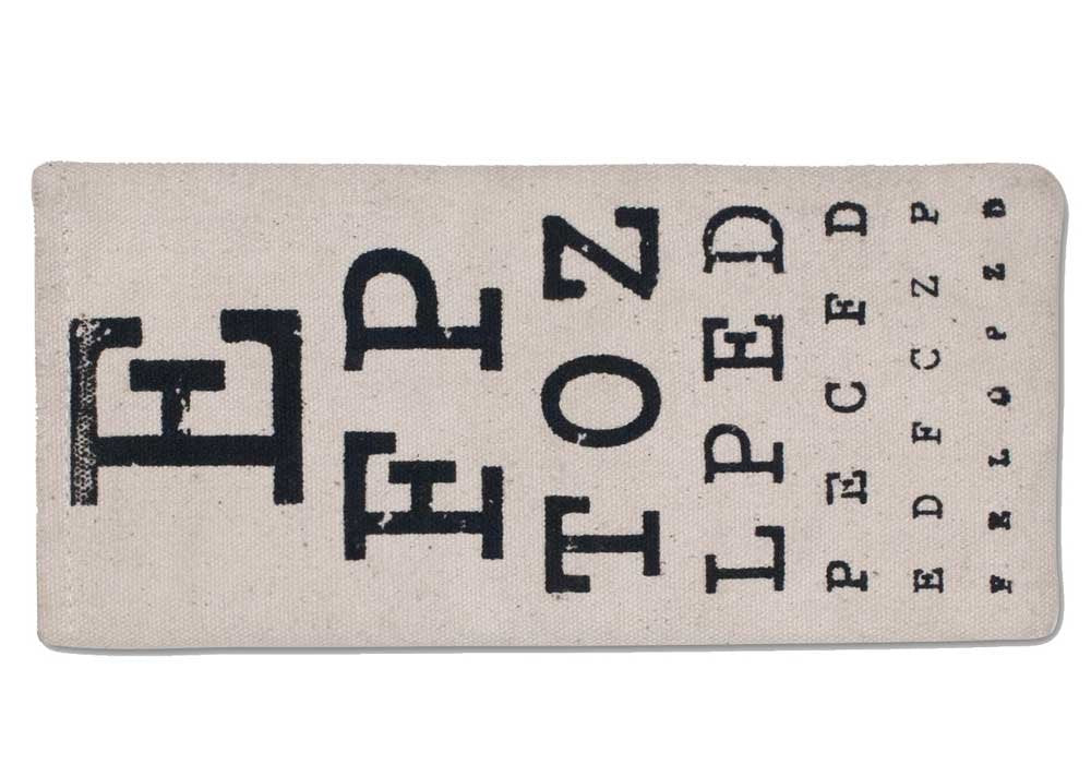This item measures 7.5 inches Length x 3.5 inches Height. Canvas case for eyeglasses. This padded pouch will keep your glasses safe and stylish. Includes a ticking lining.