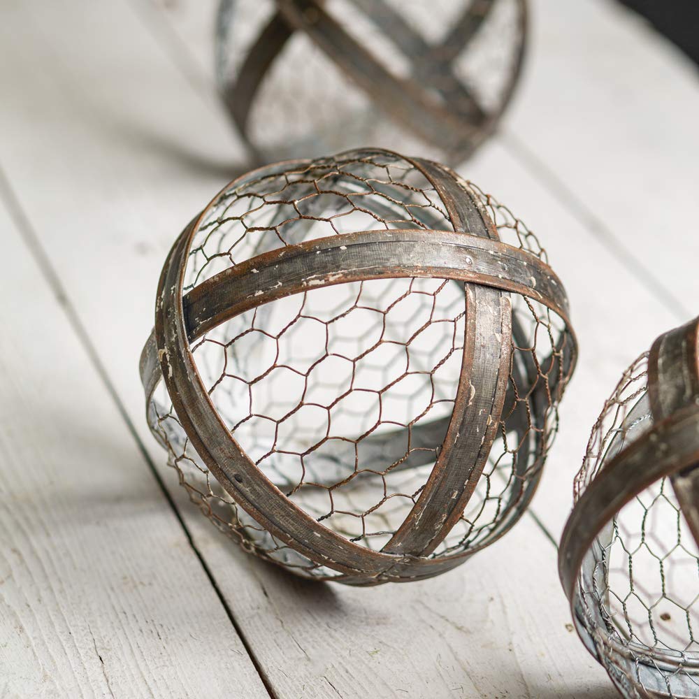 This item is made of chicken wire and galvanized metal. SKU: 530370 Measurement: 7'' dia x 7''H UPC: 801106193975
