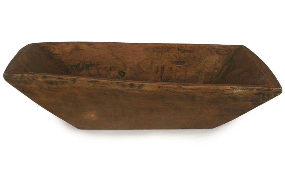 8¾ x 19¼ x 5. Features heavy carving marks on the inside. Made of resin. Our Treen is for decorative use and is not recommended for use with unwrapped food.