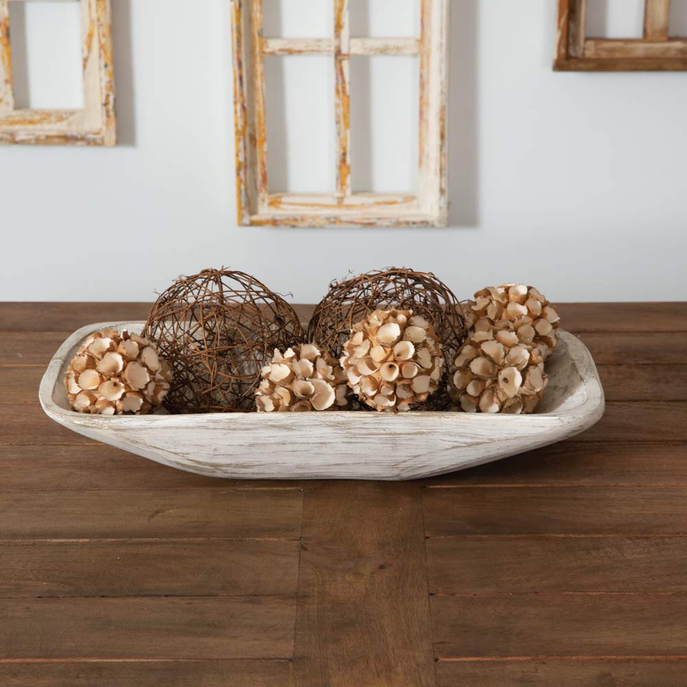 Feature this primitive whitewash bowl as a centerpiece or simplistic tabletop design