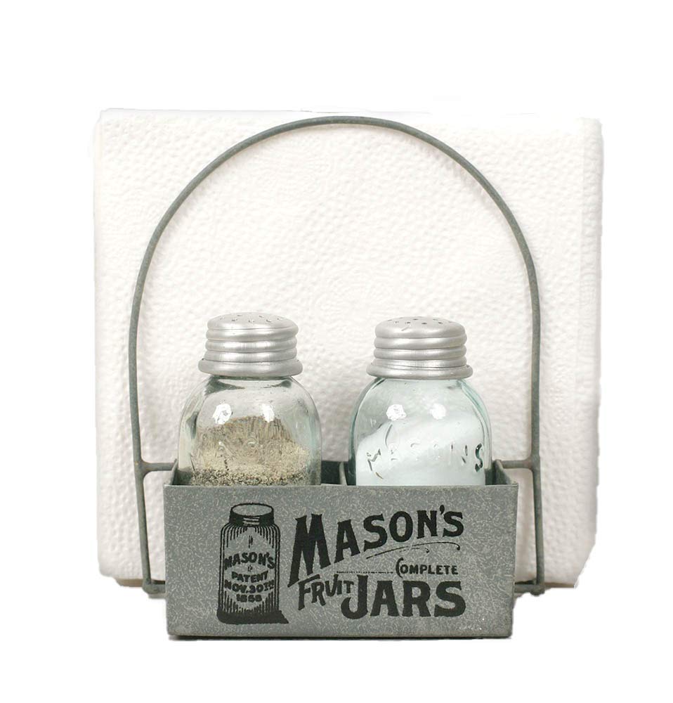 This caddy holds napkins with a salt and pepper shaker set. Do you love a fast salt dispenser pour or a light sprinkle? While other farmhouse salt and pepper shakers give you any old lid