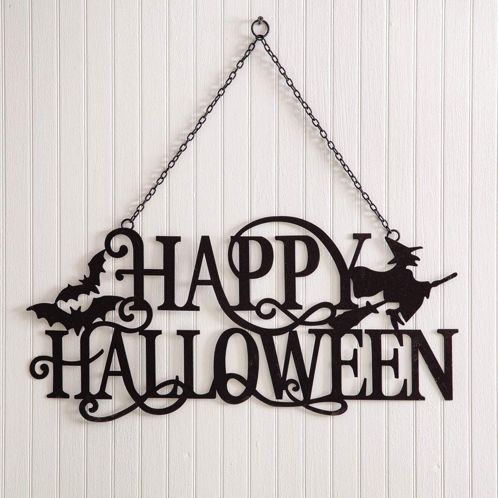 770358 Happy Halloween Hanging Sign 23-inch Width Black Metal