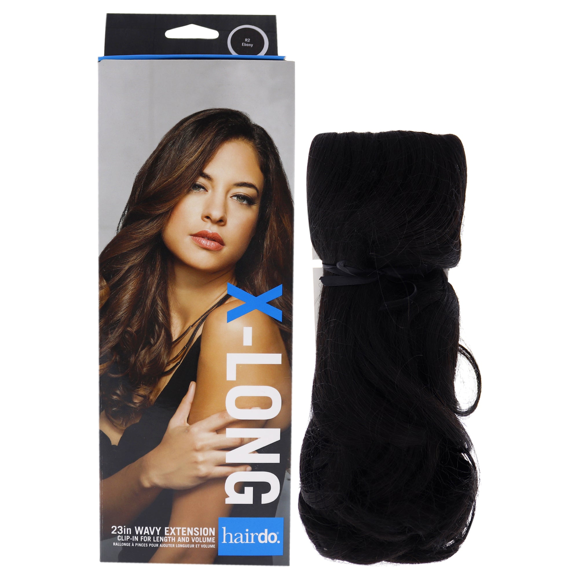 Enhance your hairstyle effortlessly with the Wavy Extension R2 Ebony by Hairdo for Women. This 23-inch hair extension offers a quick and easy way to add length and volume to your natural hair.