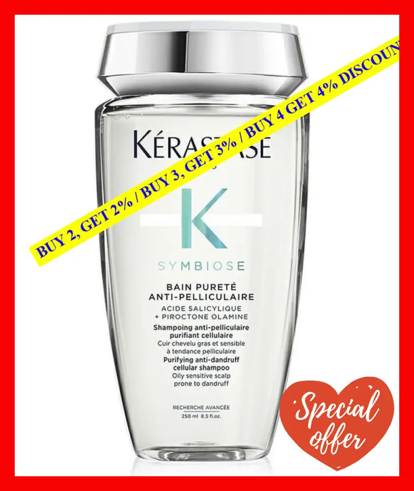 Features: Brand: KERASTASE Gender: Unisex Category: Cosmetics Type: Shampoo Size: 250ml A moisturizing sulfate-free shampoo formulated with Pyrithione Zinc that gently cleanses, purifies the scalp, and hydrates hair and scalp prone to dandruff. Helps to eliminate the symptoms of dandruff. Gently cleanses scalp and hair. Hydrates and smooths hair. Note: Apply a quarter-size amount to wet hair. Gently massage into scalp and hair until it comes to a lather. Rinse thoroughly. For best results, use at least twice a week or as directed by a doctor. Follow with Symbiose Silicone-Free Hydrating Conditioner for Scalp And Hair or Symbiose Deeply Hydrating Hair Mask for Damaged Hair each sold separately. Avoid contact with eyes. If contact occurs, rinse immediately and thoroughly. Start by applying to your scalp, then emulsify with water to create a lather. Massage scalp and comb through mid-lengths and ends in the shower before following with a conditioner or mask. Ingredients: Aqua - Water - Eau Sodium Methyl Cocoyl Taurate Laureth-5 Carboxylic Acid Cocamidopropyl Betaine Sodium Chloride Parfum - Fragrance Peg-150 Distearate Hexylene Glycol Sodium Benzoate Sodium Hydroxide Sodium Lauroyl Glutamate Piroctone Olamine Lactic Acid Limonene Salicylic Acid Polyquaternium-10 Peg-55 Propylene Glycol Oleate Propylene Glycol Glycerin Benzyl Salicylate Benzyl Alcohol Linalool Citronellol Citral Geraniol Artemisia Umbelliformis Flower Extract Citric Acid Potassium Sorbate