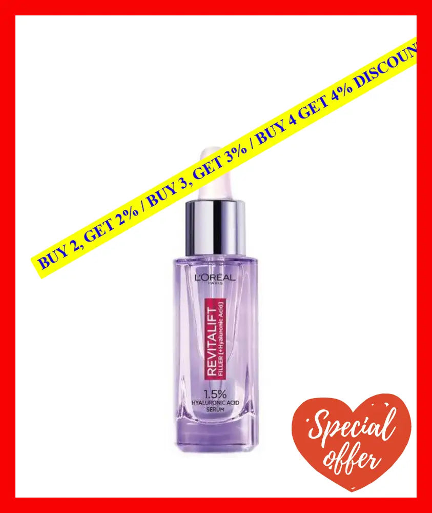 Put The Bounce Back In Your Step With The Revitalift Filler Serum From L'Oreal. Formulated With 1.5% Hyaluronic Acid, The Serum Strives To Restore Radiance And Moisture To Your Complexion. This Product Contains L?real? Highest Concentration Of The Beauty Industry's Most Sought After Ingredient, Working To Deeply Nourish And Hydrate Your Skin.