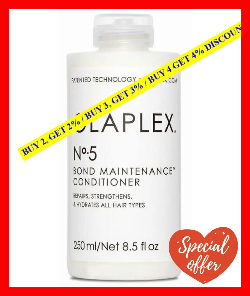 Features: Brand: Olaplex Gender: Unisex Category: Cosmetics Type: Conditioner Size: 250ml This Olaplex colour-safe conditioner restores, repairs and hydrates without adding excess weight. It also eliminates damaged frizz for strong, healthy, shiny hair. Note: Apply and leave on for three minutes then rinse. Ingredients: Water Aqua, Cetearyl Alcohol, PPG-3 Benzyl Ether Myristate, Caprylic-Capric Triglyceride, Cetyl Alcohol, Octyldodecyl Ricinoleate, Quaternium-91, Cetrimonium Chloride, Divinyldimethicone-Dimethicone Copolymer, Behentrimonium Chloride, Glycerin, Cetyl Esters, Isododecane, Fragrance Parfum, Panthenol, Phenoxyethanol, Phospholipids, Dimethicone PEG-7 Isostearate, Hydroxypropyl Guar, Glycine Soja Soybean Oil, PEG-45M, PEG-7 Amodimethicone, Amodimethicone, C12-13 Pareth-23, C12-13 Pareth-3, Camellia Sinensis Seed Oil, Disodium EDTA, Polysilicone-15, C11-15 Pareth-7, Crambe Abyssinica Seed Oil, Hydroxypropyl Cyclodextrin, Persea Gratissima Avocado Oil, Vitis Vinifera Grape Seed Oil, Laureth-9, Hexyl Cinnamal, Limonene, CitricAcid, Trideceth-12, Butylene Glycol, Citral, Ahnfeltiopsis Concinna Extract, Iodopropynyl Butylcarbamate, Silica, Citronellol, Acetic Acid, Etidronic Acid, Sodium Acetate, Chlorphenesin, Propylene Glycol, PEG-4 Dilaurate, PEG-4 Laurate, BHT, Sodium Dehydroacetate, Hydrolyzed Hyaluronic Acid, PEG-4, Pseudozyma Epicola-Argania Spinosa Kernel Oil Ferment Filtrate, Pseudozyma Epicola-Camellia Sinensis Seed Oil Ferment Extract Filtrate, Tocopheryl Linoleate-Oleate, Helianthus Annuus Sunflower Seed Oil, Quaternium-95, Propanediol, Helianthus Annuus Sunflower Seed Extract, Bis-Aminopropyl Diglycol Dimaleate, PEG-8, Punica Granatum Extract, Morinda Citrifolia Fruit Extract, Euterpe Oleracea Fruit Extract, PEG-8-SMDI Copolymer, Palmitoyl Myristyl Serinate, Sodium Polyacrylate, Tocopherol, Potassium Sorbate, Sodium Benzoate, Pentaerythrityl Tetra-Di-T-Butyl Hydroxyhydrocinnamate, Biotin