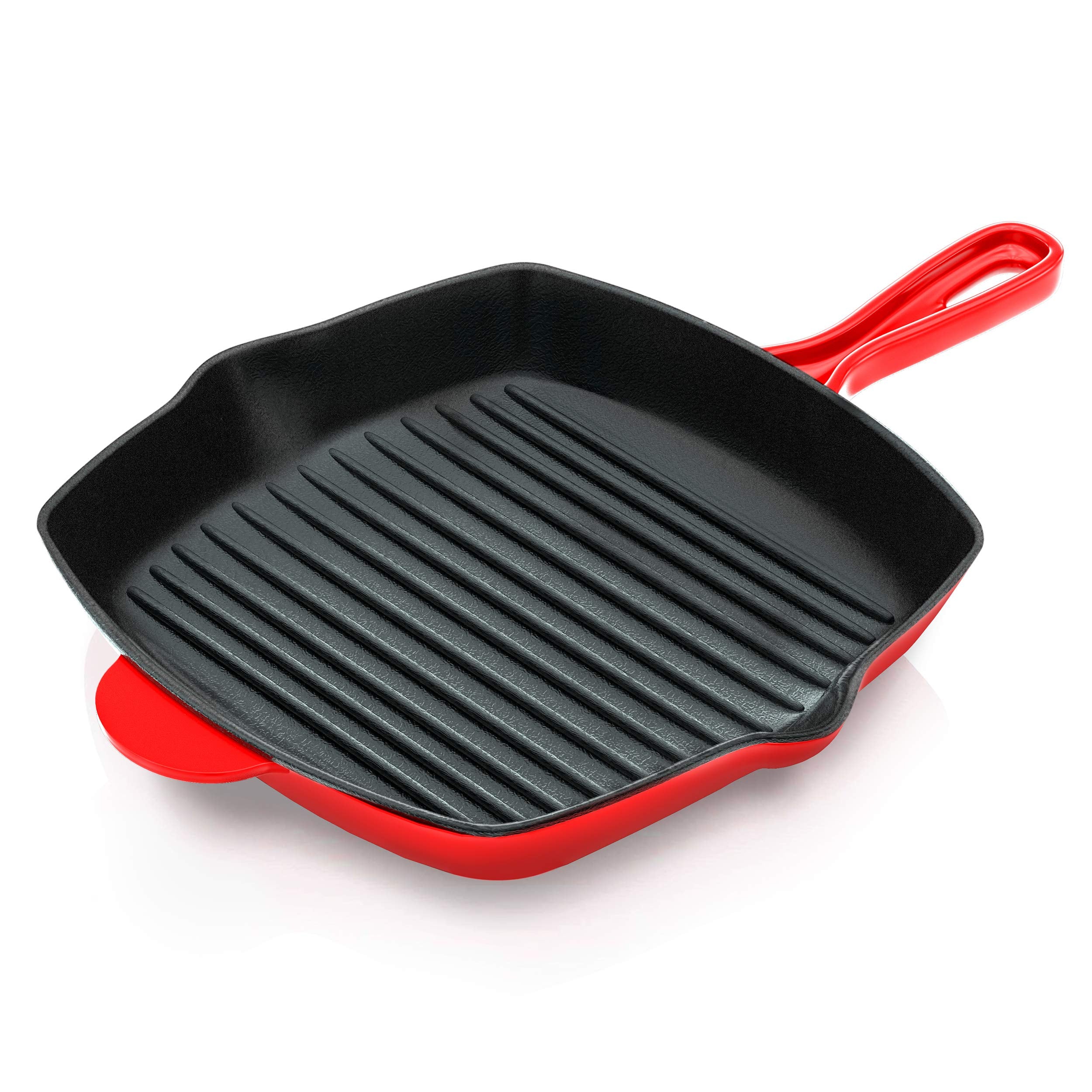 Kitchen Skillet Grill Pan - Square Cast Iron Skillet Grilling Pan with Non-Stick Enamel CoatingFeatures: Classic Kitchen Skillet Pan Design Long Lasting, Heavy-Duty Cast Iron Grilling Pan Enjoy Traditional Grill Pan Cooking Style Stylish, Modern Home Kitchen Color Smooth Porcelain Enamel Outer Coating Extra-Wide Square Skillet Size for Large Meals Ridge-Lined Grill Marks for Chargrilled Food Integrated Side Drip Lips for Excess Pouring Oil & Grease Effectively Distributes & Retains Heat for Even Cooking All-Around Stain-Resistant & Easy-to-Clean Perfect Kitchen Cookware for Oven Safe & Stovetop Meal Prep Safe for Gas, Electric, Ceramic & Induction Counter CooktopsTechnical Specs: Skillet Style: Square Pan Max Temperature: 500° Fahrenheit (200° Celsius) Construction Material: Cast Iron Metal, Porcelain Enamel Total Grill Pan Size (L x W x H): 17. 09’’ x 11. 46’’ x 1. 81’’ -inches Sold as: 1 Weight: 8. 15 lbs.