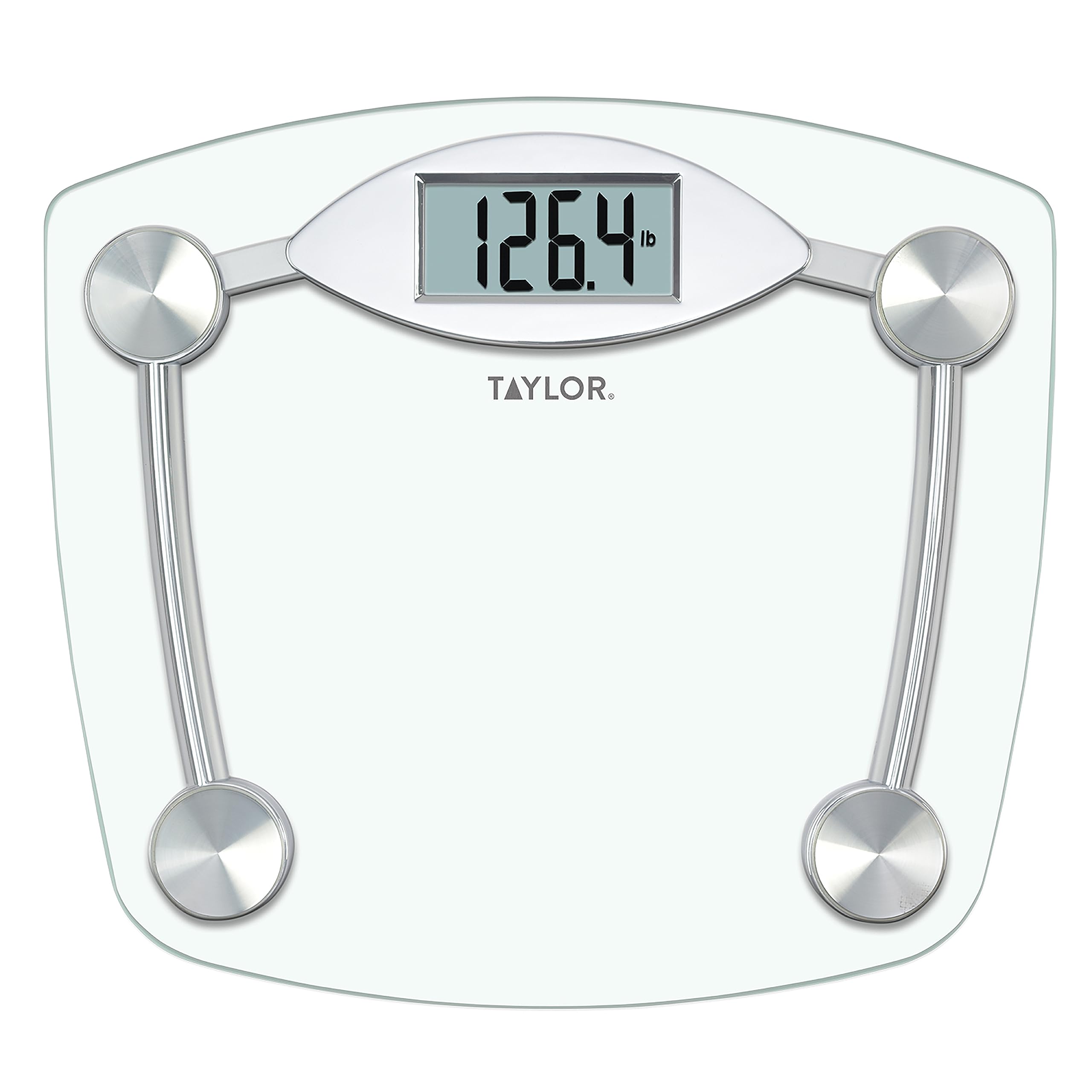 Product DescriptionPart of any responsible weight loss or fitness program should involve picking out an accurate body scale to monitor results. This 400 lb. which is not likely to die or weaken during the lifetime of the scale. The weight scale’s attractive tempered glass top mounts on an industrial-style chrome base and measures 12-3/4 inches across, offering a spacious platform to stand on. The easy-to-use electronic bathroom scale turns on with a quick step onto the glass scale platform and features instant on, auto zero, auto off, and a low battery indicator. A large 1.2-inch LCD display makes it easy to see readings without bending down, and weight readings lock and display for 5 seconds before the unit shuts off to conserve battery power..Amazon.comPart of any responsible weight loss or fitness program should involve picking out an accurate scale to monitor results. This model from Taylor guarantees precise weight readings and runs on a lithium battery--which is not likely to die or weaken during the lifetime of the scale. The scale’s attractive tempered-glass top mounts on an industrial-style chrome base, and measures 12-3/4 inches across, offering a spacious platform to stand on. The scale turns on with a quick step onto the glass platform. A large 1-inch LCD display makes it easy to see readings without bending down. Weight readings lock and display for 5 seconds before the unit shuts off to conserve battery power. The scale holds up to 400 pounds, and is covered by Taylor under a 5 year warranty.