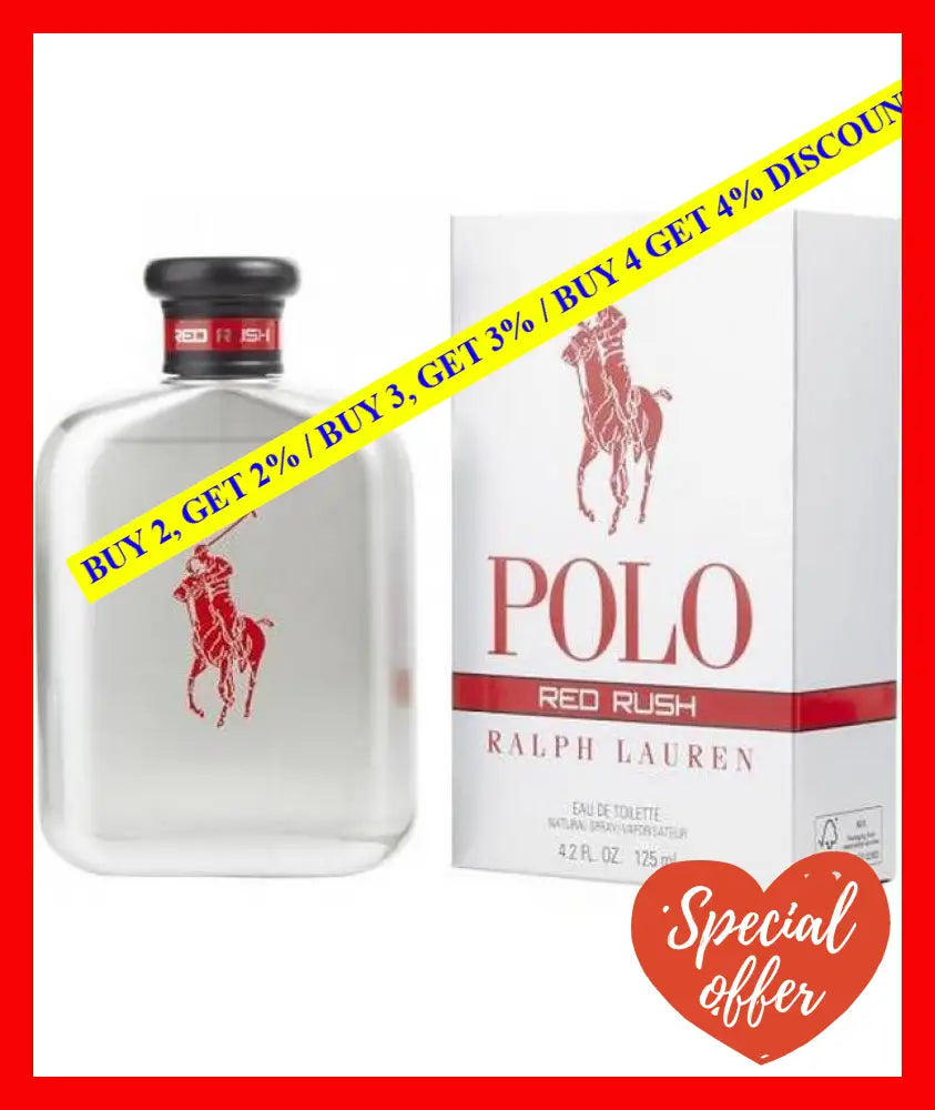 Polo Red Rush Is A Fresh, Masculine Scent, Featuring Citrusy Top Notes Of Red Mandarin, Grapefruit And Lemon Lifted By Sweet, Tropical Pineapple. Heady Base Notes Of Cedarwood And Deep Red Coffee Blend With Pungent Heart Notes Of Spearmint And Red Saffron, With Hints Of Lavender And Orange Blossom To Round Out The Spicy Accord. The Cologne Is Packaged In A Silver Version Of The Company's Sleek, Signature Flask And Features The Well-Known Polo Logo In Scarlet. Atop The Sophisticated Bottle Sits A Deep Black Stopper That Is Wrapped In A Thin, Crimson Ribbon Bearing The Scent's Name. Features: Gender: Men Category: Perfume Type: Eau De Toilette Top Notes: Grapefruit, Lemon, Pineapple, Red Mandarin Heart Notes: Mint, Lavender, Red Apple, Red Saffron, Orange Blossom Base Notes: Cedarwood, Coffee, Musk Size 125 ML Packaged In A Beautiful Glass Bottle
